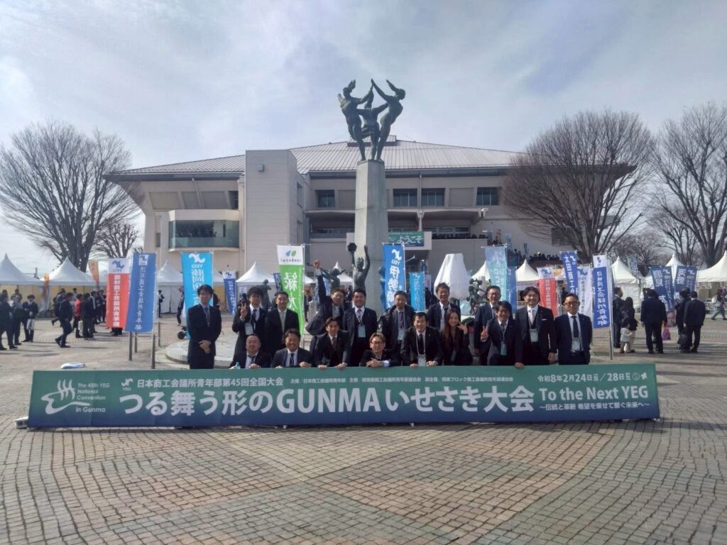 2/26〜2/27全国大会伊勢崎大会へ参加致しました!今年度は卒業生5名の参加があり、総勢23名の参加となりました!26日は大懇親会へ参加し、その後は八千代メンバーで卒業生を囲む懇親会で楽しい一夜を過ごしました。27日は式典に参加し物産展も堪能してから、それぞれ帰路につき非常に濃密な2日間となりました。全国大会のような大規模なイベントに多くのメンバーで卒業生との思い出を作る事ができた充実した会となりました。