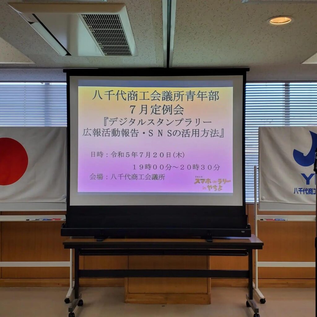 令和5年7月20日、八千代商工会議所2階会議室において、7月定例会「デジタルスタンプラリー広報活動報告•SNSの活用方法」が開催されました。 7月例会では、まずはスタンプラリー事業の広報活動について報告を行い、続いて今年